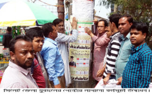 বৃহস্পতিবার দুপুরে কেন্দ্রীয় কর্মসূচীর অংশ হিসেবে সিলেট নগরীর দেয়ালে পোষ্টার সাটানো ও লিফলেট বিতরন করেন করেন সিলেট জেলা যুবদলের সাধারন সম্পাদক মামুনুর রশিদ মামুন’সহ যুবদল নেতৃবৃন্দ। এসময় নেতৃবৃন্দ বলেন, মানুষের আয় বাড়ছে না। কিন্তু সরকার কোন যৌক্তিক কারন ছাড়াই ঘন ঘন গ্যাস, বিদ্যুত এর দাম বাড়িয়েছে। সে কারনে সকল নিত্য প্রয়োজনীয় দ্রব্যের দাম হু হু করে বেড়ে মানুষের ক্রয় ক্ষমতার বাইরে চলে গেছে। এদিকে সরকারের কোন ভ্রুক্ষেপ নেই।