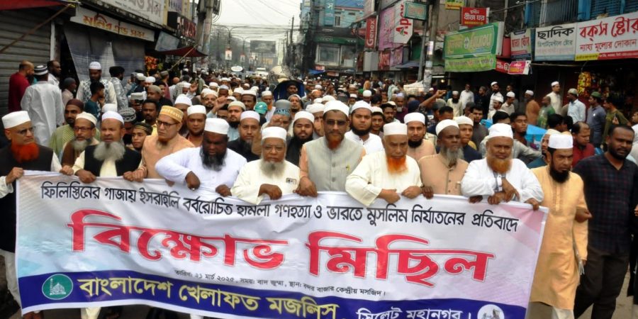 শুক্রবার (২১ মার্চ) বাদ জুমা মহানগরীর বন্দরবাজার এলাকায় জুম্মার নামাজের পরপরই বিক্ষোভ মিছিল করে খেলাফত মজলিসের ছাত্র সংগঠন বাংলাদেশ খেলাফত ছাত্র মজলিস। নেতারা জুমার নামাজ শেষে কালেক্টর মসজিদের সামনে জড়ো হয়ে নারায়ে তাকবির আল্লাহু আকবার বলে স্লোগান দেন। পরে তারা একটি মিছিল নিয়ে বন্দরবাজার থেকে জিন্দবাজার পয়েন্ট পর্যন্ত মিছিল করেন।