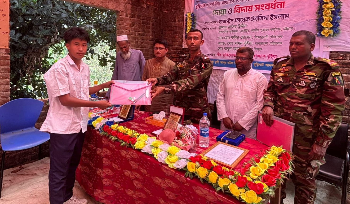 শহিদুল ইসলাম : সম্প্রীতি ও উন্নয়ন প্রকল্পের আওতায় নানিয়ারচর সেনা জোন কর্তৃক এপ্রিল ২০২৬ (শনিবার) রাঙ্গামাটি জেলার নানিয়ারচর উপজেলাধীন বুড়িঘাট ইউনিয়নের আওতাধীন বুড়িঘাট আদর্শ নিম্ন মাধ্যমিক বিদ্যালয়ের এস.এস.সি পরীক্ষার্থীদের বিদায়ী সংবর্ধনা অনুষ্ঠিত হয়।