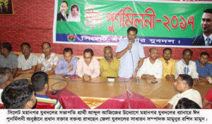 প্রধান বক্তার বক্তব্যে সিলেট জেলা যুবদলের সাধারন সম্পাদক মামুনুর রশিদ মামুন বলেন শেখ হাসিনার অধীনে বিএনপি নির্বাচনে যাবে না। সুষ্ঠু ও গ্রহণযোগ্য নির্বাচন এদেশের জনগণ এবং বিদেশী বন্ধুরাষ্ট্র ও উন্নয়নশীল দেশগুলো আশা করছে। ভোটাধিকার, গণতন্ত্র এবং অধিকার আদায়ে বিএনপি পিছ পা হবে না। তিনি নেতাকর্মীদের প্রস্তুত থাকার আহ্বান জানিয়ে বলেন, দেশনেত্রী বেগম খালেদা জিয়া যে কোন সময় গণতান্ত্রিক সরকার প্রতিষ্ঠা এবং সহায়ক সরকারের অধীনে নির্বাচনের দাবীতে আন্দোলনের ডাক দিবেন। নেতাকর্মীদের ত্যাগের মানসিকতা নিয়ে আগামী দিনের আন্দোলনে রাজপথে ঝাঁপিয়ে পড়তে হবে।
