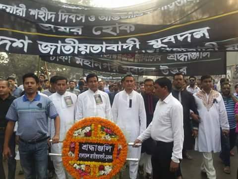 আন্তর্জাতিক মাতৃভাষা দিবসে কেন্দ্রীয় যুবদলের শ্রদ্ধাঞ্জলী অর্পন