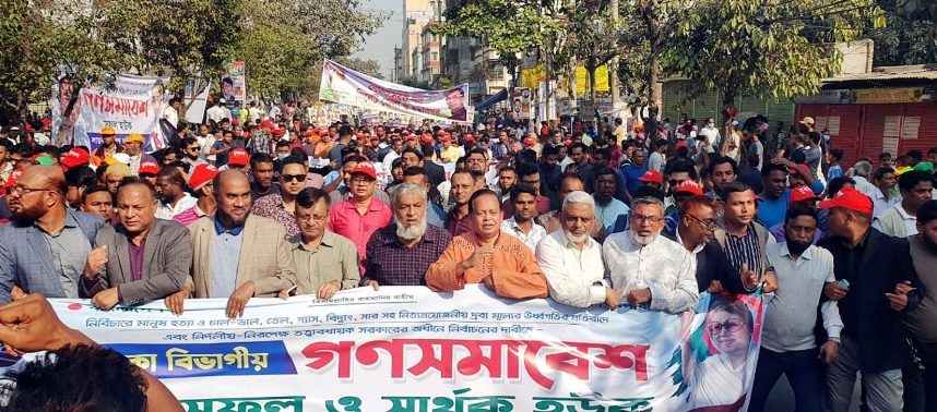 এদিকে ইতিমধ্যে কানায় কানায় পূর্ণ গোলাপবাগ মাঠ। জনতার ঢল নেমেছে সড়কে। মাঠ পেরিয়ে কমলাপুর ও মুগদা সড়কে জনস্রোত সৃষ্টি হয়েছে। খণ্ড খণ্ড মিছিল নিয়ে সমাবেশস্থলের দিকে অগ্রসর হচ্ছেন নেতাকর্মীরা। ঢাকা বিভাগের পাশাপাশি সারা দেশ থেকে ব্যানার ও মিছিল নিয়ে এখনো আসছেন তারা।