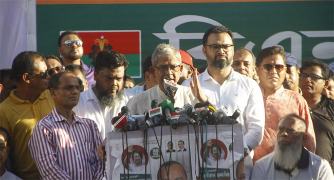 আজ বুধবার বিকেলে নয়া পল্টনে একদফা ঘোষণার সমাবেশে তিনি এ কথা বলেন। গণতন্ত্রের ঘাতক, সর্বগ্রাসী দুর্নীতি ও সর্বনাশা অনাচারে লিপ্ত ফ্যাসিস্ট আওয়ামী লীগ সরকারের পদত্যাগ এবং নির্বাচনকালীন নির্দলীয় নিরপেক্ষ সরকারের দাবি আদায়ের লক্ষ্যে যুগপৎ ধারায় বৃহত্তর গণ-আন্দোলনের একদফার যৌথ ঘোষণার জন্য সমাবেশের আয়োজন করে বিএনপি।
